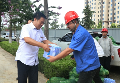 7月16日,盛夏初伏,公司黨委書記、董事長馬福森帶領(lǐng)班子成員深入工程工地、維保現(xiàn)場、管材生產(chǎn)一線,看望慰問奮戰(zhàn)在高溫下的一線員工們,向大家表示親切的慰問和崇高的敬意,同時(shí)給大家?guī)チ讼募痉朗罱禍仄,帶去公司黨委領(lǐng)導(dǎo)的關(guān)懷。
